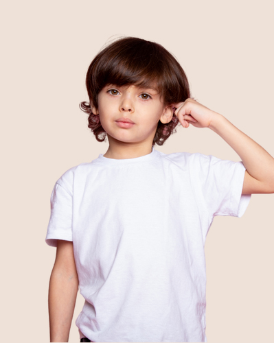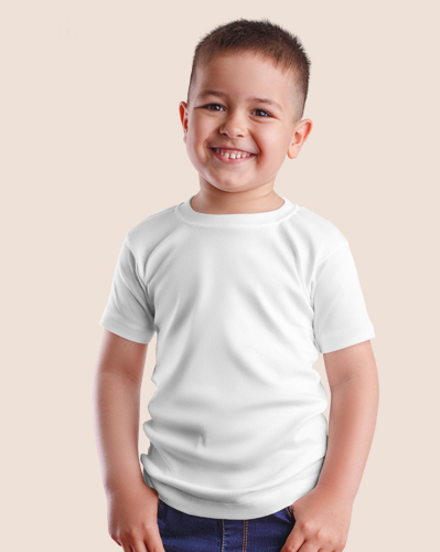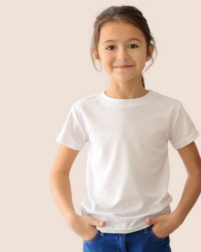 Playera infantil de tela Brush 100% poliéster: suave, ligera y resistente.